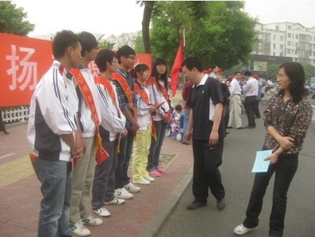 值五四青年节来临之际,为进一步增强公民的法律意识,提高法制观念,促进法制观念深入人心,引导群众学会运用法律武器来维护自己的合法权益不受侵害。同时锻炼大学生与人沟通的能力,把平时所学的法律理论知识与实践有机结合,430日上午,法政学院团总支副书记黄春建老师带领法政学院10级法学专业同学和青年志愿者协会同学到许昌市文峰广场开展了“宣传法律知识 弘扬志愿精神”的法律知识宣传和咨询活动。活动期间,许昌市团市委书记王志宏、副书记张淑芹一行莅临现场,询问宣讲内容并对同学们的志愿精神予以赞扬。
