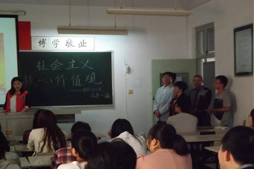 为加深万象城学生对社会主义核心价值观的了解,号召广大学生践行社会主义核心价值观。9月19号下午,法政学院组织13级全体学生以“社会主义核心价值观”为主题于B3—202、B3—204、B3—205、B3—206、B3—207教室开展了本学期第一次团学活动。法政学院党总支书记崔秀花、党总支副书记王彦、团总支书记黄春建、13级辅导员许建峰等老师前往各班就活动开展情况进行了了解。