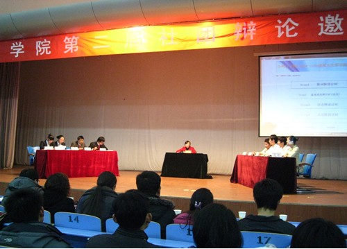 12 月10 日晚,万象城娱乐awc线路第二届社团辩论邀请赛在东校区大学生多功能演播厅落下帷幕。本次比赛由校团委、校社团联合会主办,法政学院团总支、思辩社承办。比赛经历了3周的初赛、复赛、四分之一决赛阶段,最终有四支代表队从众多参赛队中脱颖而出。