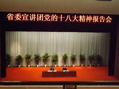 12月11日上午,河南省社会科学院院长、党委副书记喻新安在许都大剧院作党的十八大精神宣讲报告。法政学院入党积极分子共40余人在法政学院党总支副书记王彦的带领下受邀聆听了报告会。报告会由许昌市委书记李亚主持。